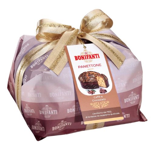 Deze panettone met de heerlijke combinatie van koffie en chocolade in het zachte- en luchtige deeg, heeft bovenop een 'glassato' laag van verkruimelde hazelnoten en hele amandelen. De koffie gemengd door het deeg, gecombineerd met de eersteklas ingredienten zoals o.a. de stukjes pure chocolade, cacaoboter, verse scharreleieren, amandelen en de beste vanille zorgen voor een unieke smaakcombinatie.